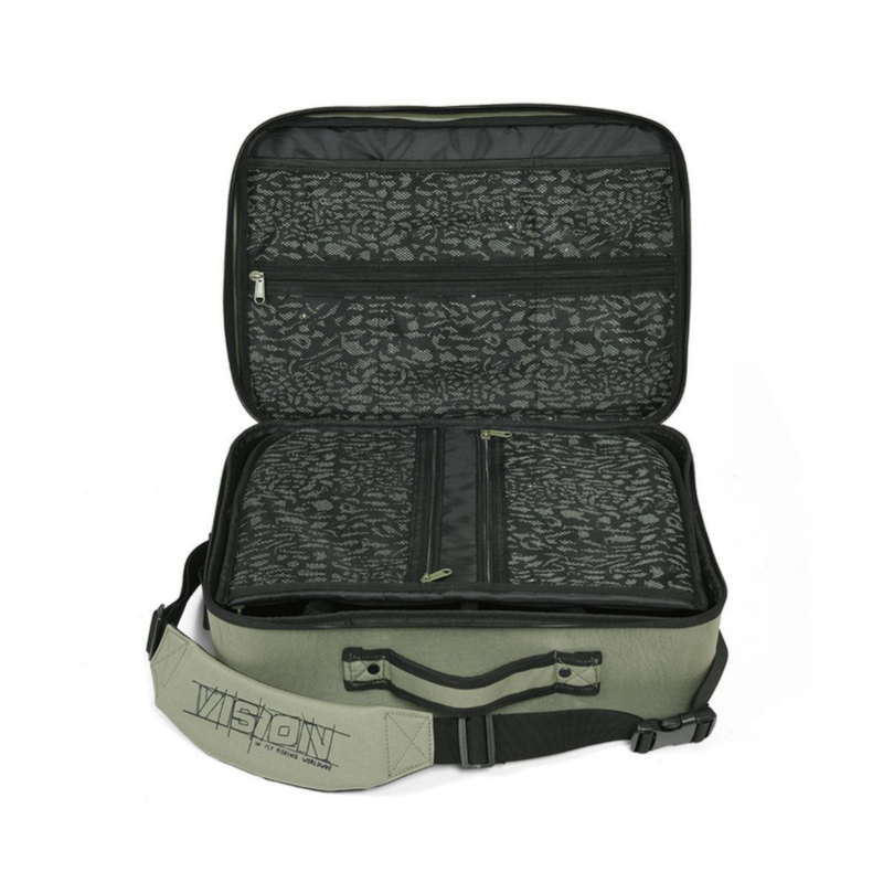 Þessi taska er alvöru ahliða taska fyrir flugveiðimenn. Hægt er að nota töskuna sem rúmgóða hjólatösku, sem getur haldið mörg fluguhjól í mismunandi stærðum þökk sé færanlegrum skilrúmum. Einnig er hægt nota töskuna sundir myndavélar og aukahluti eða undir fluguhnýtingar dótið þitt á ferðalagi. Skilrúmin verja einnig innihald töskurnar. Fullt af hólfum og vösum fyrir alskyns dót. Taskan er með vatnsheldum botni.
